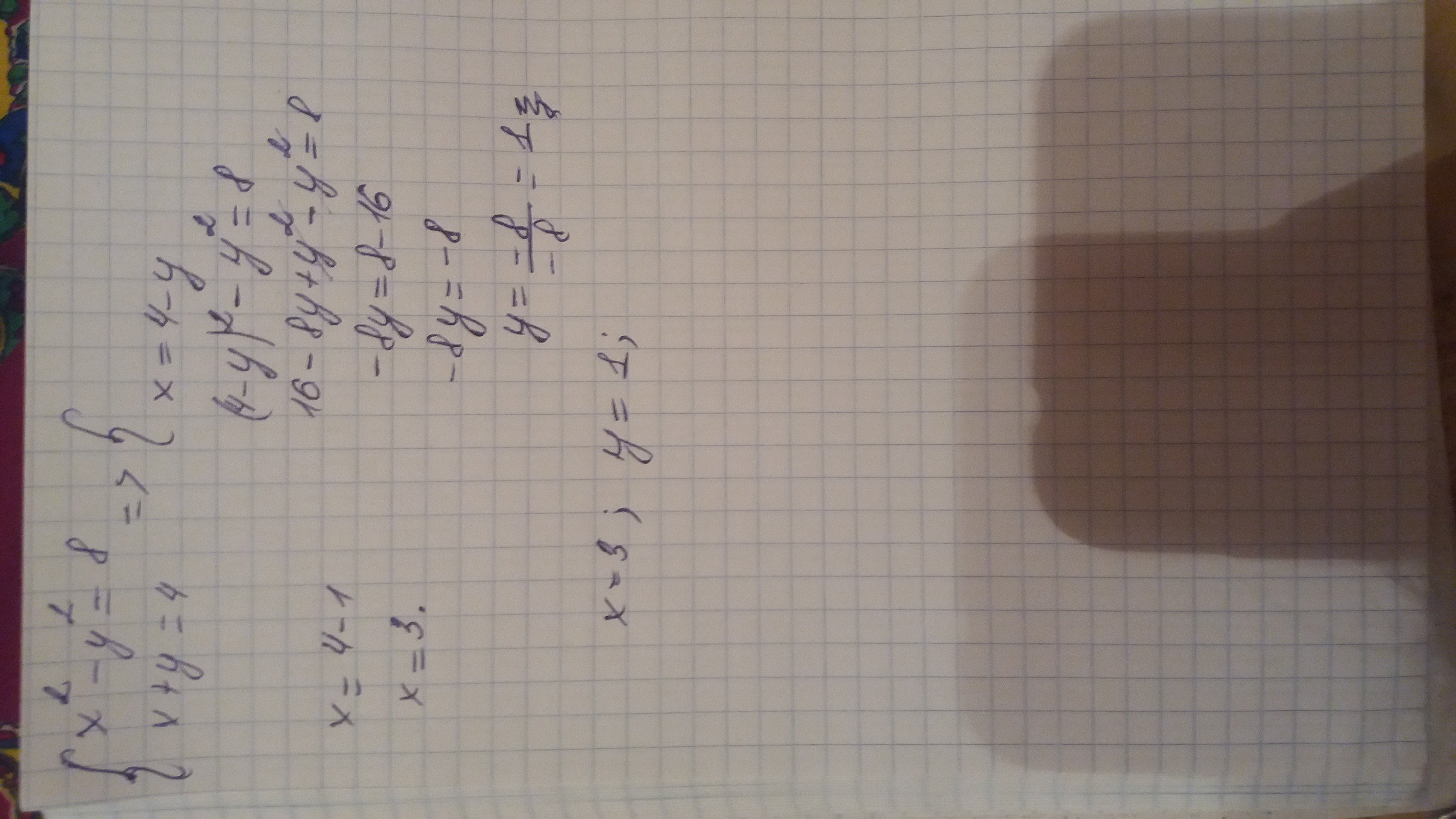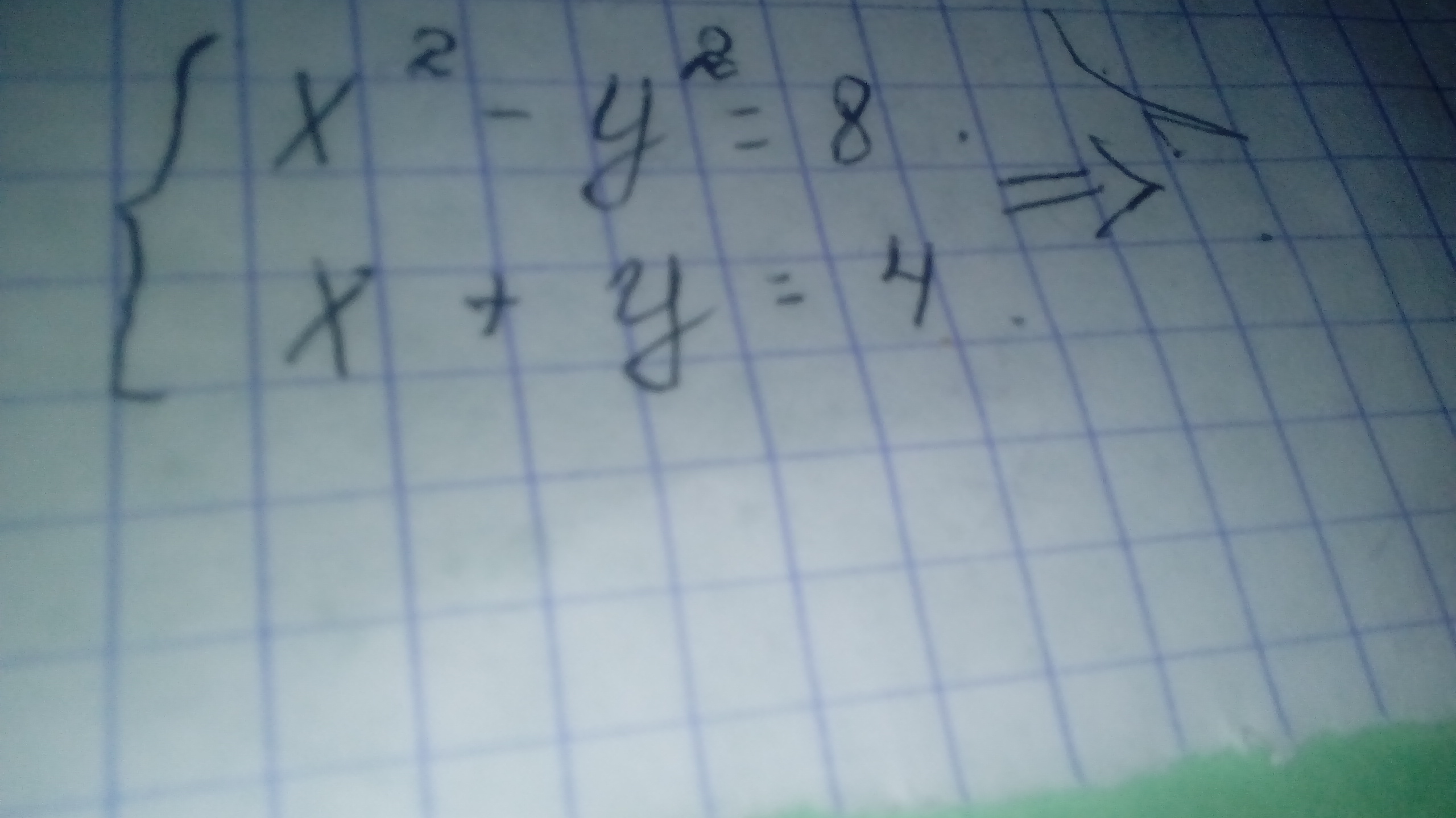 (х-у)*(х+у)=8 (х+у) -мы знаем из второго уравнения, так что (х-у)*4=8