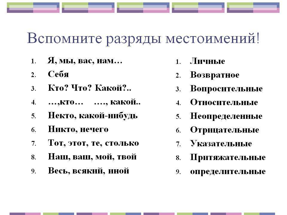 Разряды местоимений: Примеры местоимений: