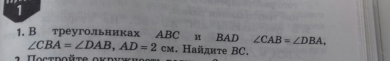 Треугольники АВС и АВD равны. АВ общая сторона и прилежащие к ней углы равны. Значит ВС=АD=2 см.