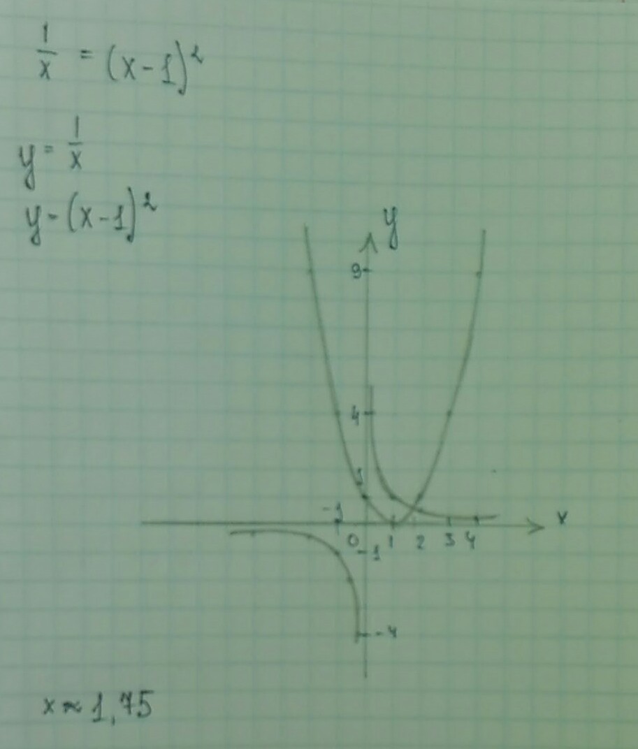 Графиком второго уравнения является парабола, сдвинутая на 1 единицу вправо