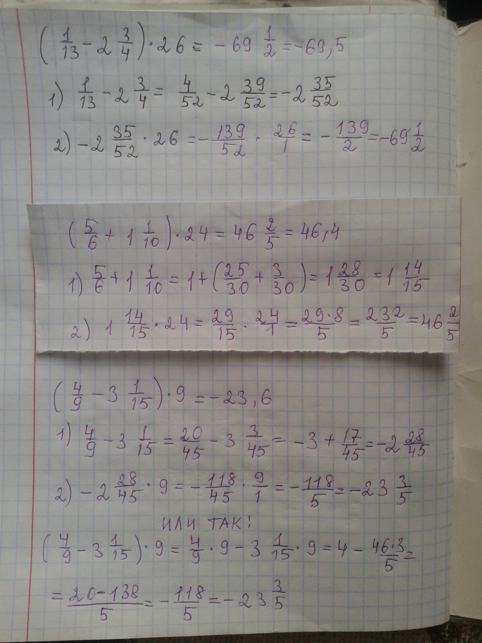 1) 1/13 - 2 3/4=4/52 - 2 39/52= - 2 35/52