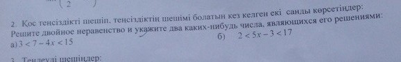 РЕШИТЕ ДВОЙНОЕ НЕРАВЕНСТВО И УКАЖИТЕ ДВА КАКИХ-НИБУДЬ ЧИСЛА ЯВЛЯЮЩЕЙ ЕГО РЕШЕНИЕ