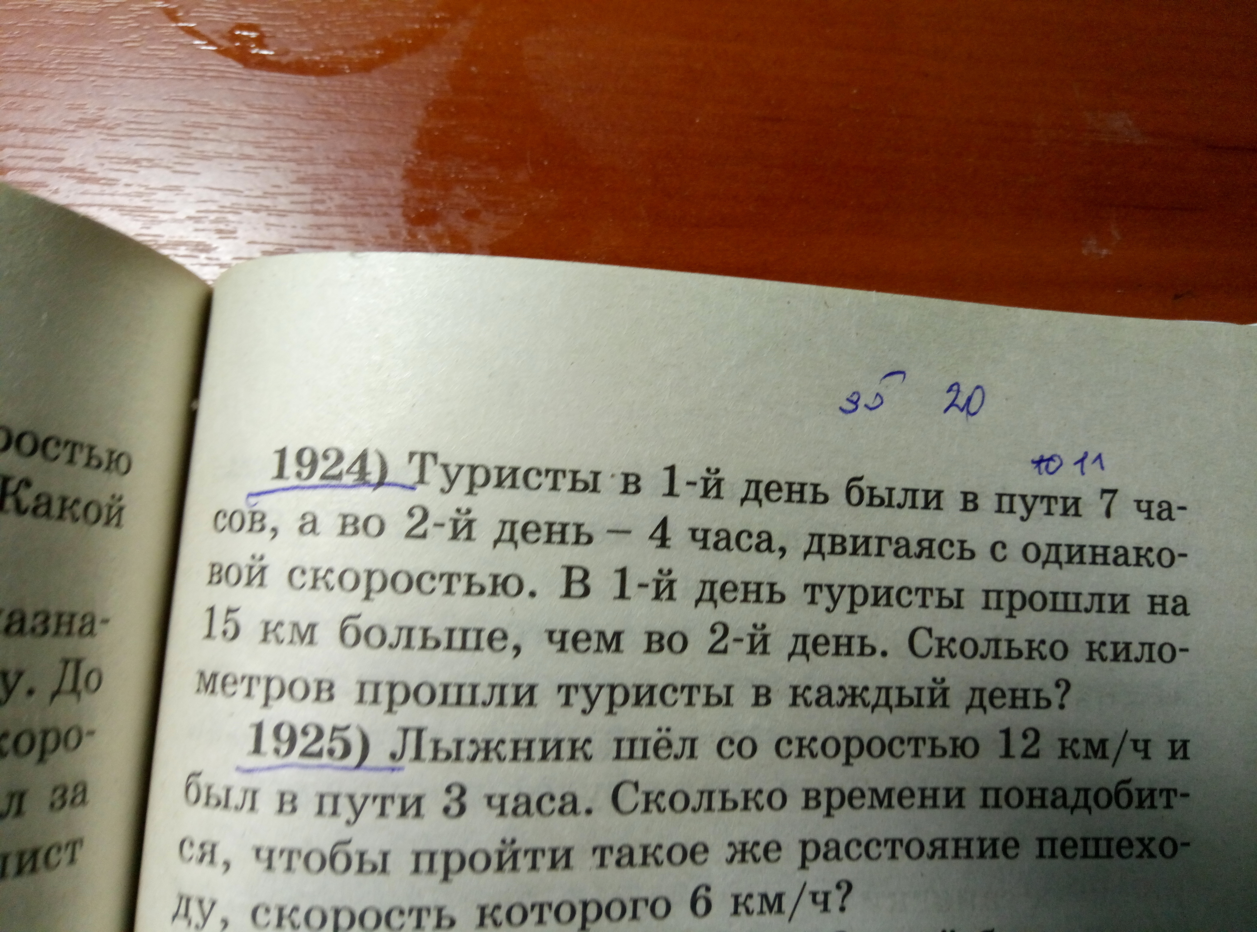 1) 15÷(7-4)•7=35 (км) - в 1 день