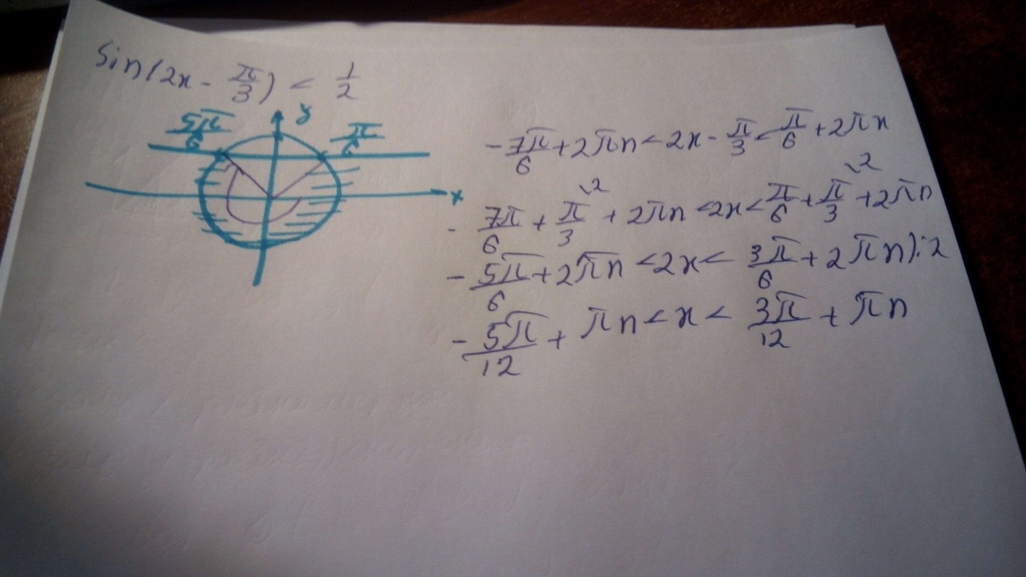 - 5π/6 + 2πn < 2x < π/2 + 2πn