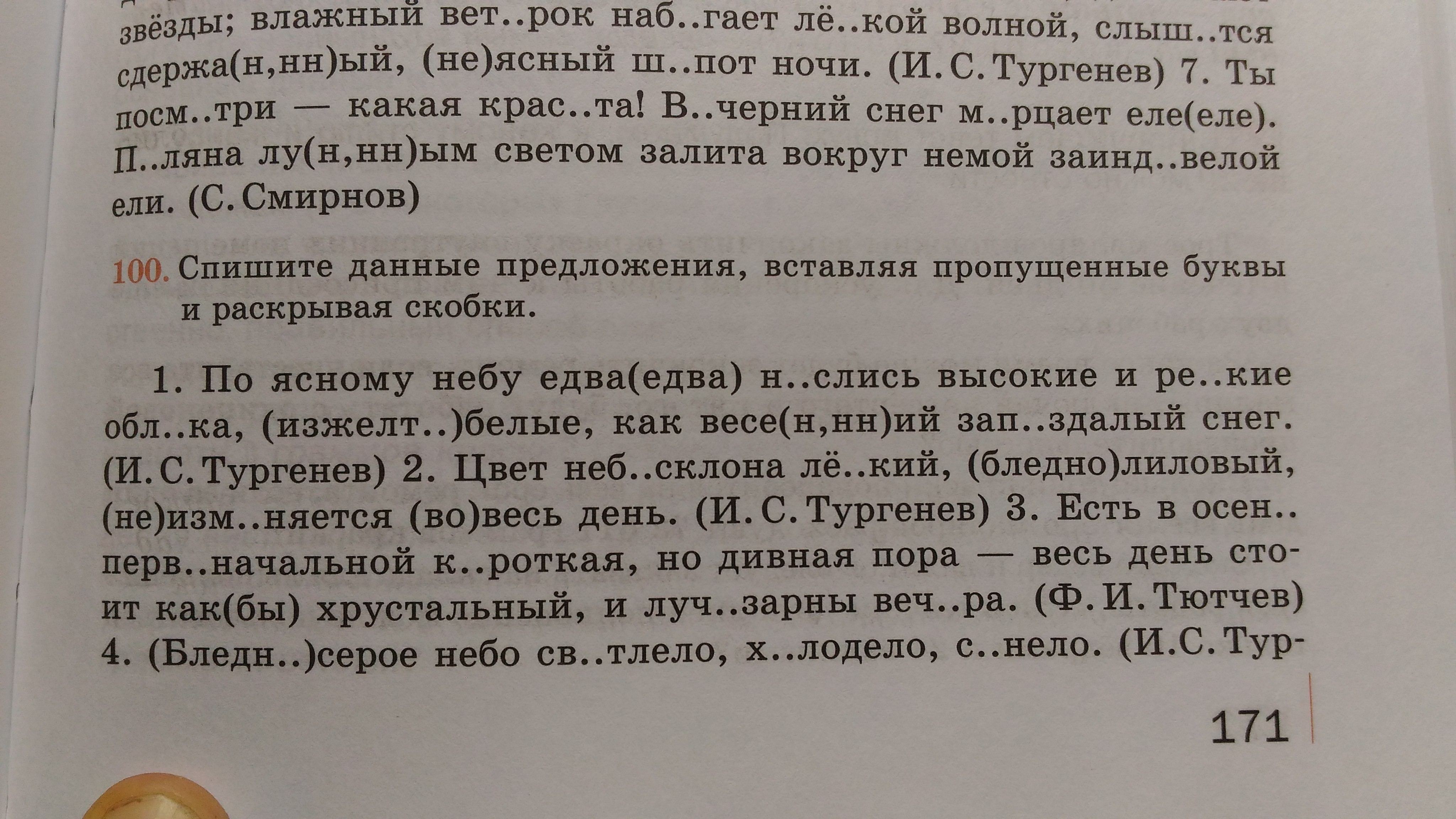 1)По ясному небу едва-едва неслись высокие и редкие облака, изжелта-белые, как весенний запоздалый снег.