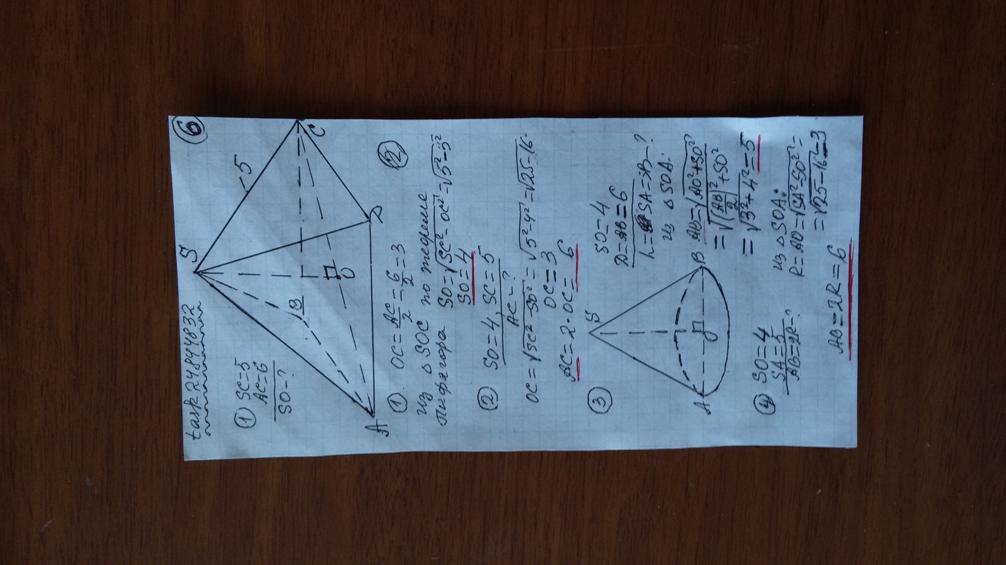 R =AO =√(SA² - SO²) =√(5² - 4²) =√(25 - 16) = √9 = 3
