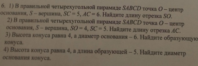 AC =2*OC =2√(SC²- SO²) =2√(5²- 4²) =2√(25- 16) =2√9 =2*3 =6.