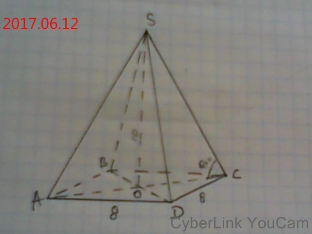 Площадь основания пирамиды S(основания)=8·8=64 см².