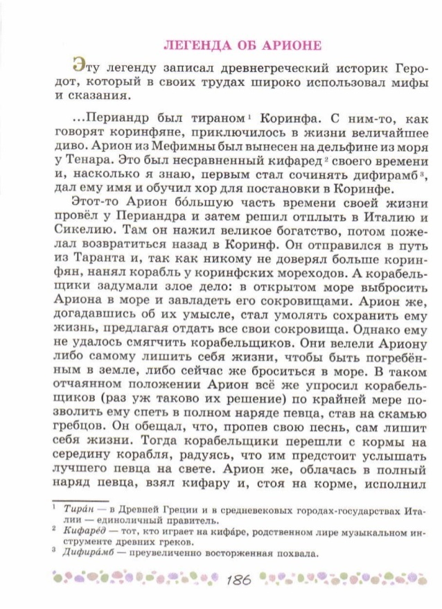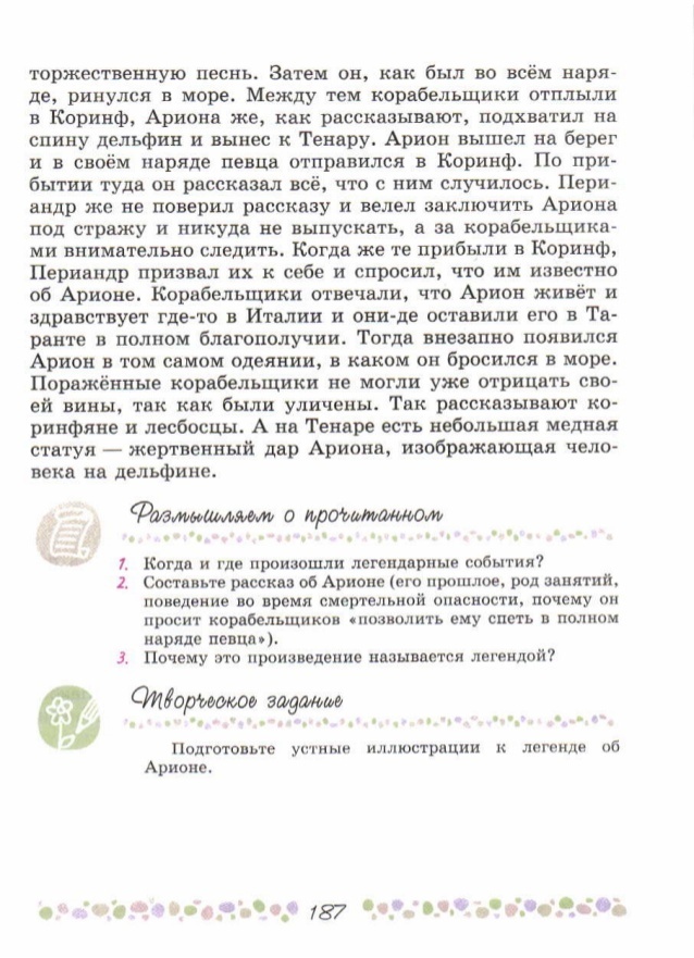 Нужен краткий пересказ. Об рассказе легенды об Арионе