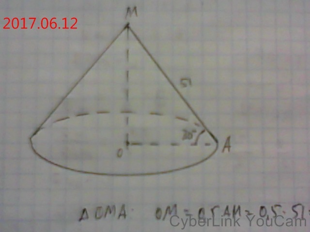 ΔМОА. ОМ=АМ/2=51/2=25,5 см. h=25,5 см.