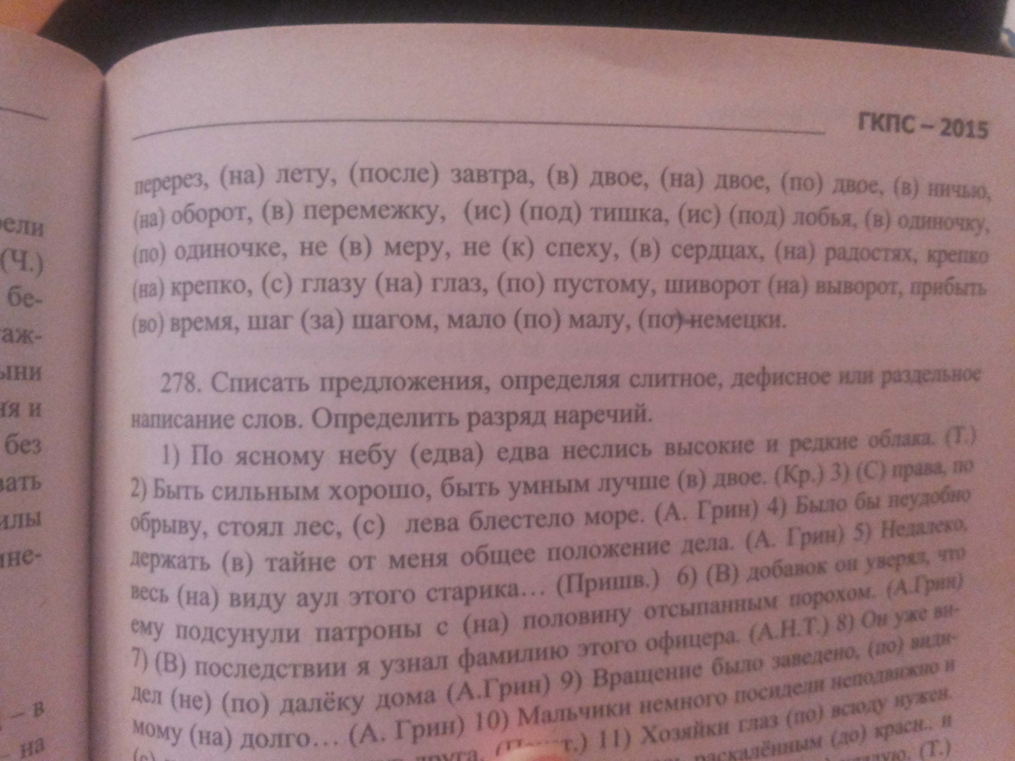 Напишите, пожалуйста! "Вставить, где необходимо, пропущенные буквы. Определить слитное, дефисное или раздельное написание." (слова, которые выше упражнения 278)