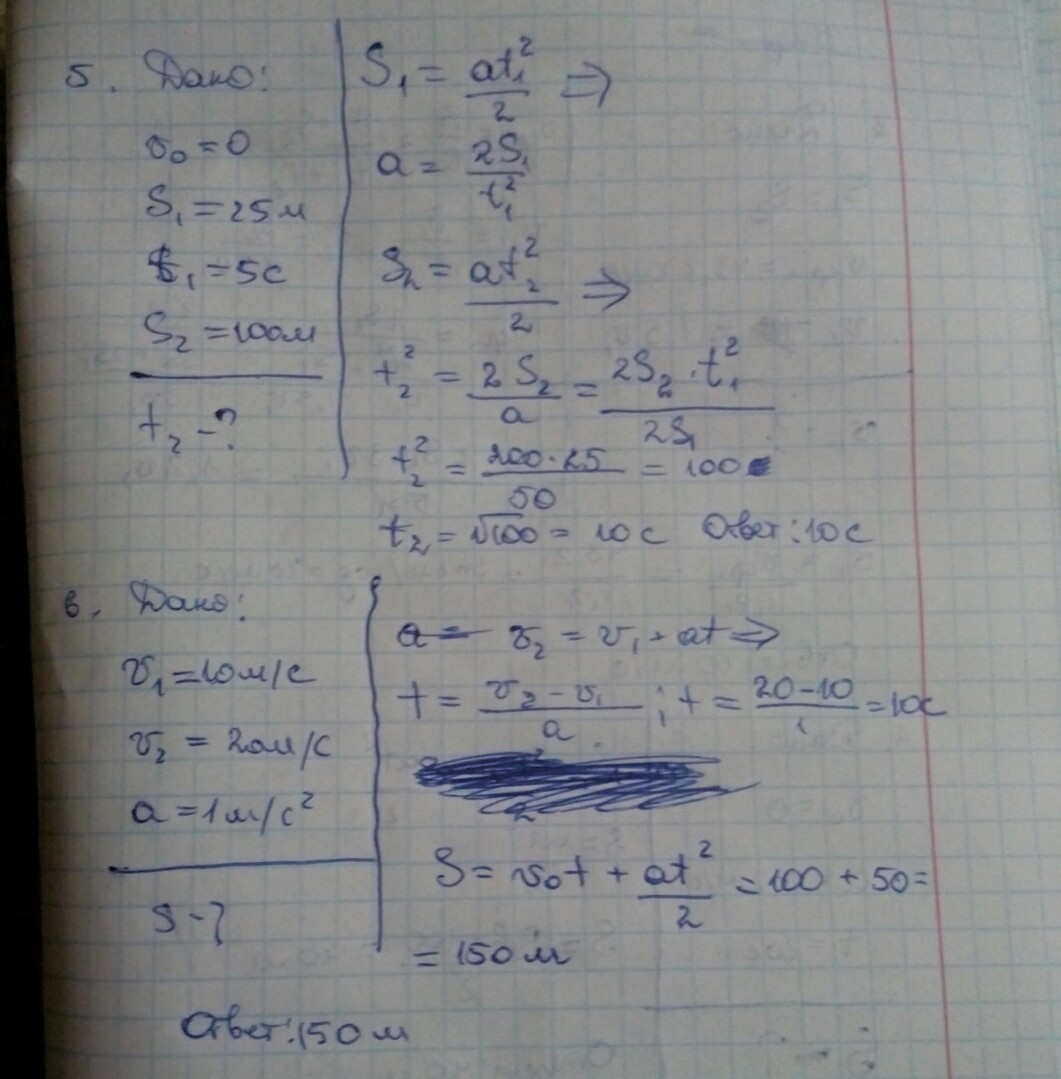 6) какое расстояние пройдет тело за время увеличения своей скорости в два раза если его начальная скорость 10 м/с , а ускорение 1 м/с2 ?