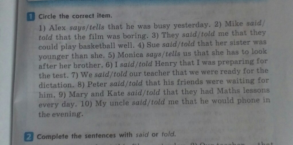 1 says 2 said 3 told 4 said 5 tells 6 told 7 told 8 said 9 said 10 told