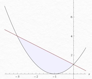 S=∫-3,0(1-x-x^2-2x-1)dx=∫-3,0(-x^2-3x)dx=|0,-3(-x^3/3-3x^2/2)=0-(-(-3)^3/3-3*(-3)^2/2=-(-9-4,5)=4,5