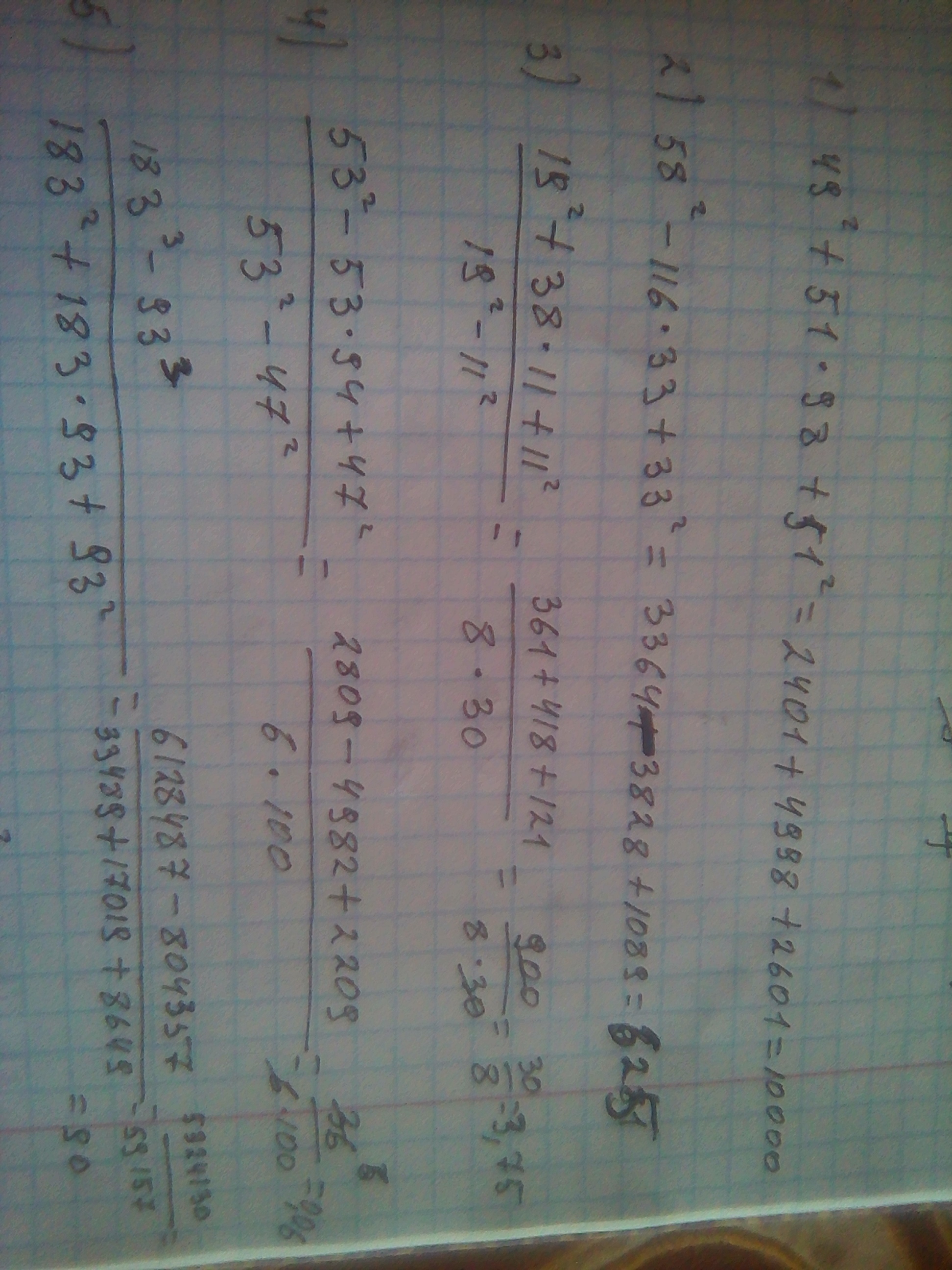 1) 49² + 2*49*51 + 51² = (49 + 51)² = 100² = 10000