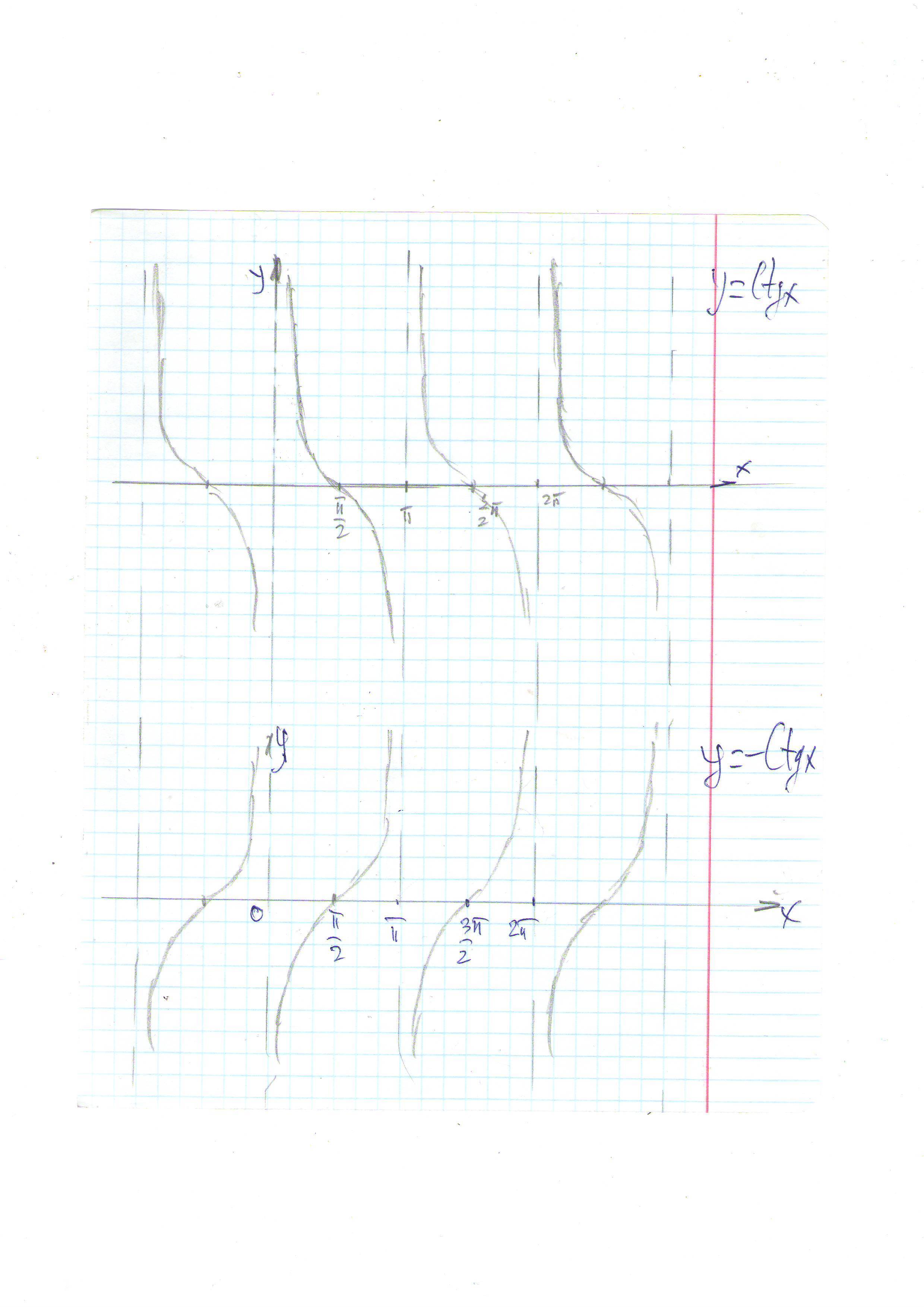 у = tg(x - π/2) = -tg(π/2 - x) = -Ctgx