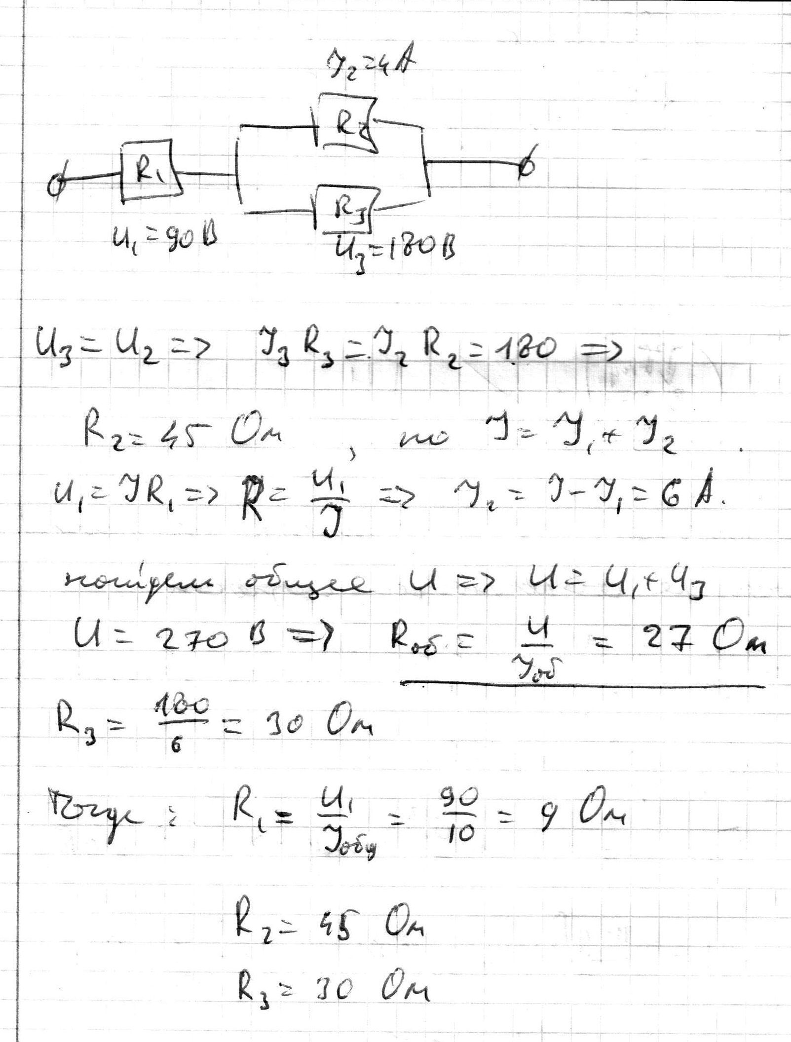 I2=4 A Io=10 A U1=90 B U3=180 B R1=? R2=? R3=?