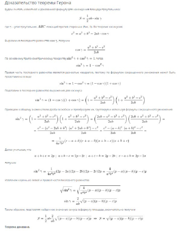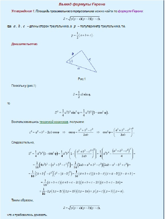 Нужно вывести теорему Герона с самого начала, до конечной нужной формулы , двумя способами, скрины приветствуются
