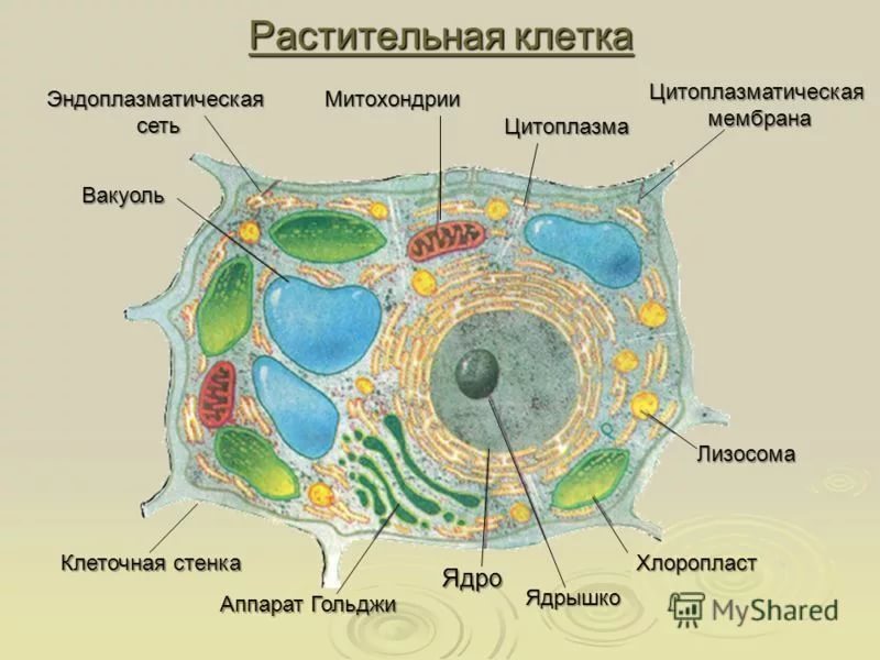 В растительной клетке есть ядро и все органоиды, свойственные в животной