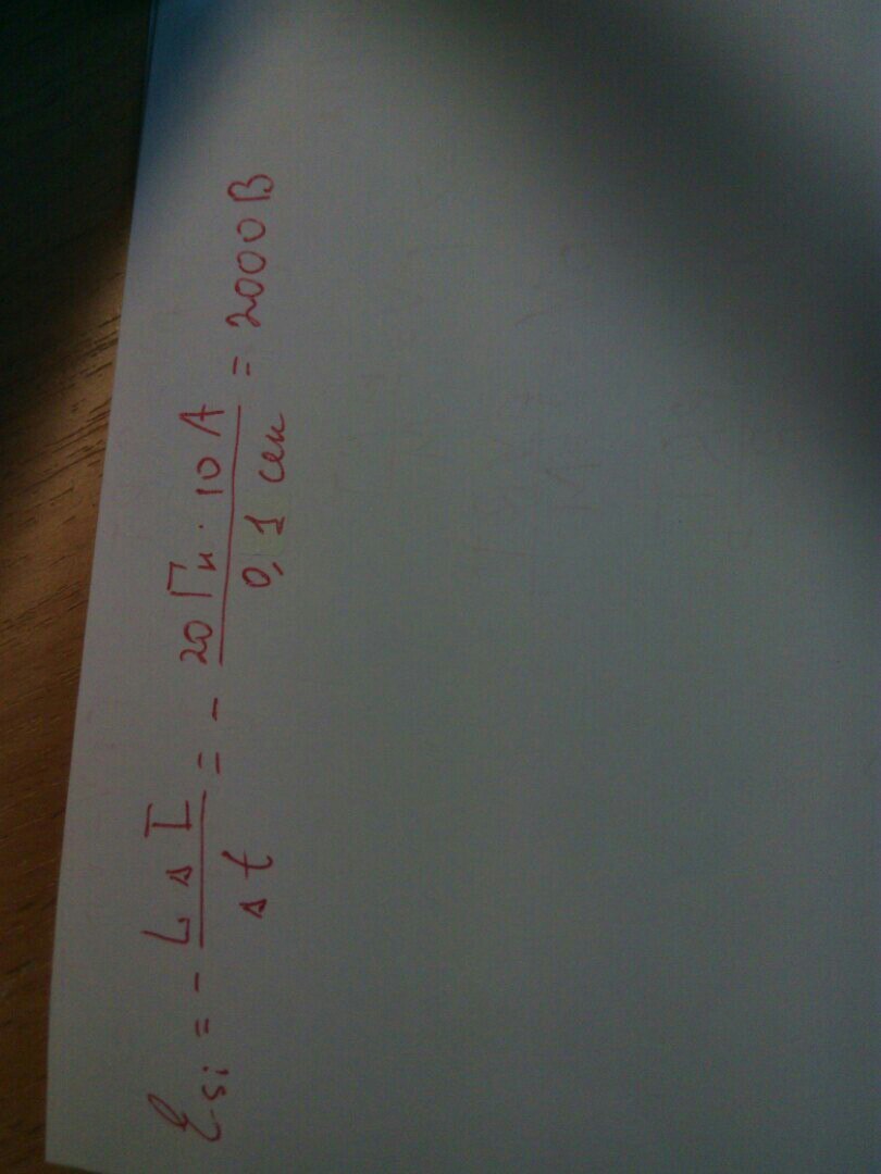 Індуктивність котушки з сердечником дорівнює 20 Гн, струм в ній 10 А. Яка ЕРС самоіндукції виникав в котушці, якщо коло розімкнеться, і струм рівномірно спаде до нуля за 0,10 с?