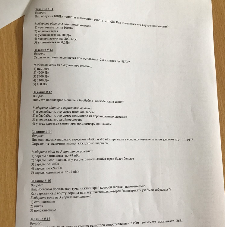12) Q=c*m*Δt=4200*2*2=16800 этого ответа нет. скорее всего для 1 кг воды, тогда Q=8400 Дж Ответ 3