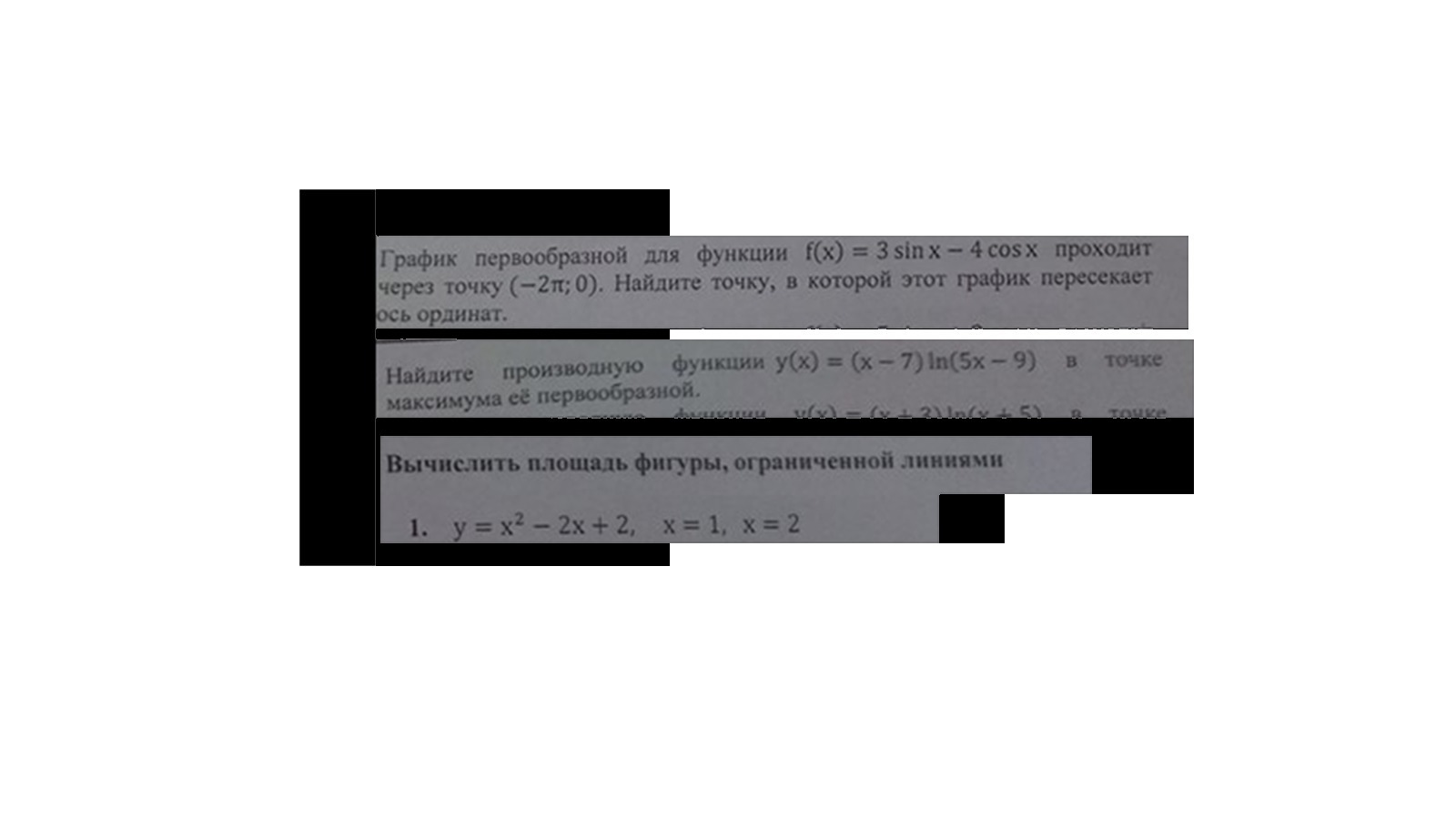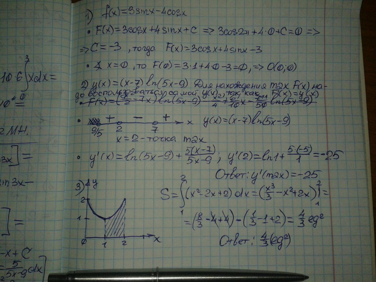 В задании №2 нет необходимости искать первообразную (она найдена и зачёркнута), так как для нахождения точки максимума надо будет взять от первообразной производную. А это есть y(x), которая дана в условии.