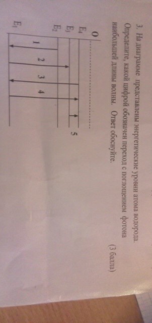 Наибольшая длина волны соответствует наименьшей энергии. На схеме энергия возрастает от 0 до Е1 (поглощение - стрелка вниз). Это 1.