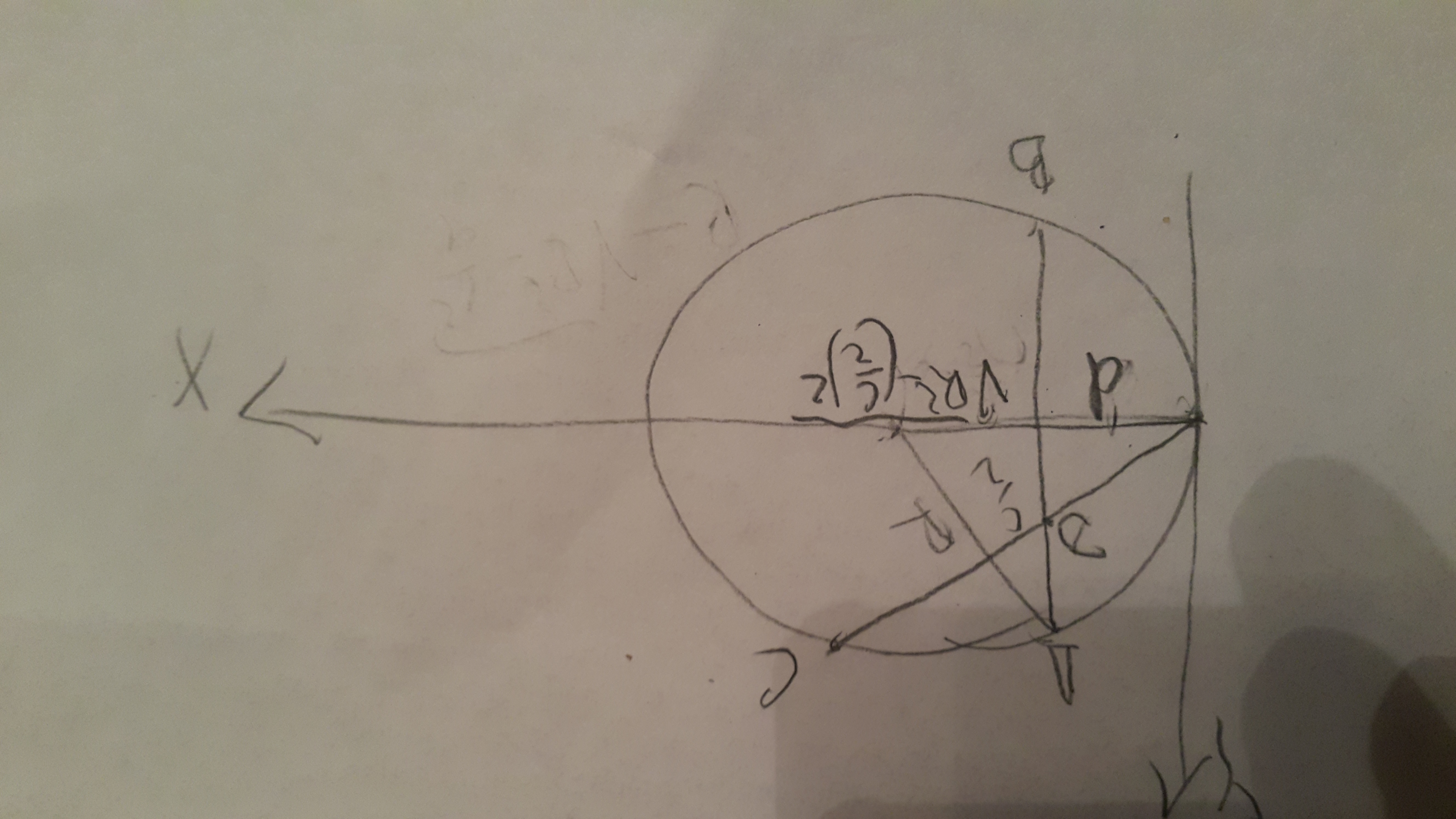 Прямая x=d пересекает окружность в точках A и B (|AB|=c известно,