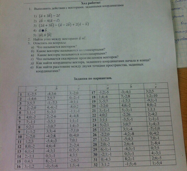 а {3; -1; 2}; b { -1; -5; -6}; с{ 1; 5; -4}