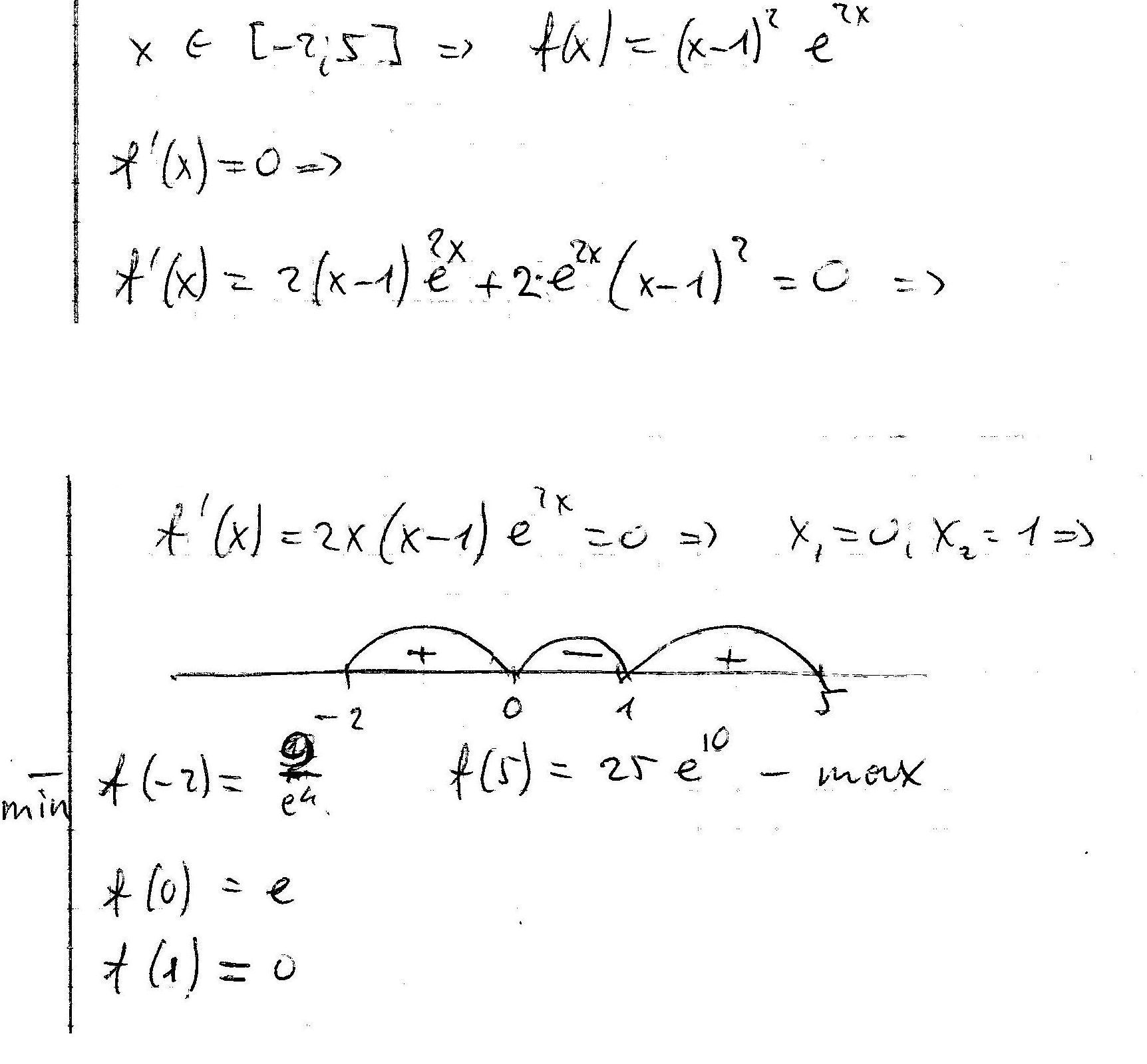 вычеслить наибольшее и наименьшее значеие непрерывности на отрезке -2.5;е функции f(x)=(x-1)^2*e^2x