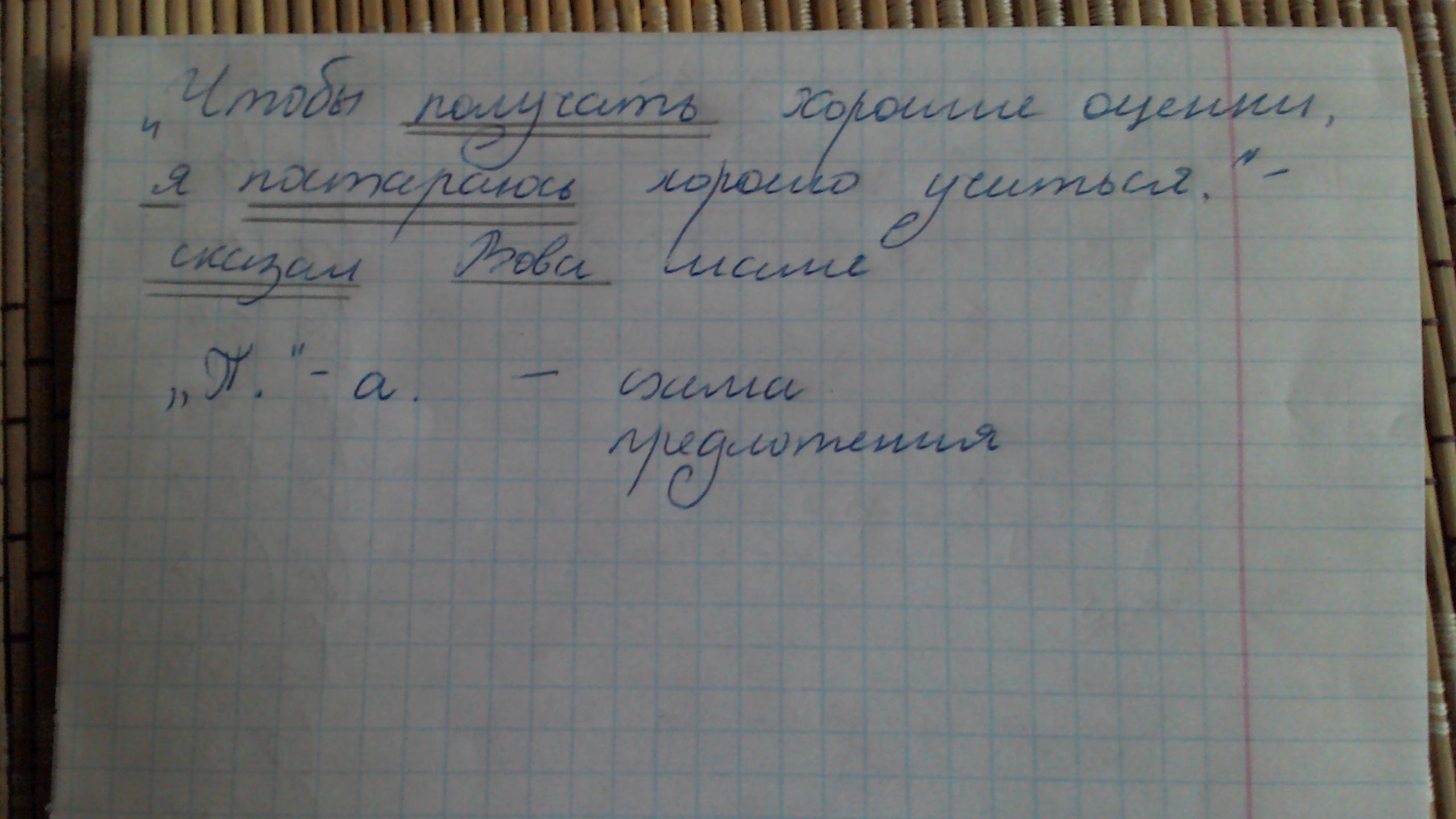 синтаксический разбор,спр. глаголов. "Что бы получать хорошие оценки я постараюсь хорошо учиться",-сказал Вова маме.