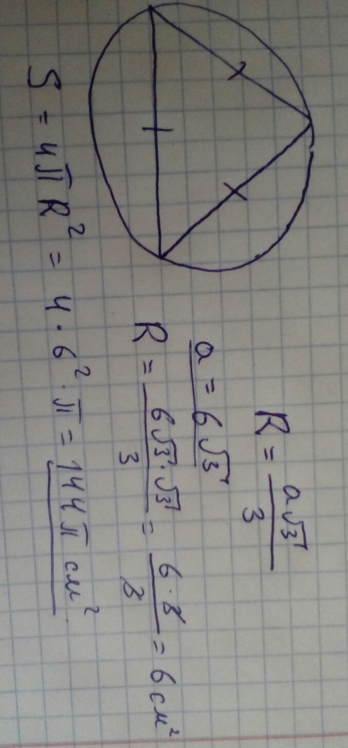 S=4piR^2=4×6^2pi=144pi см кв