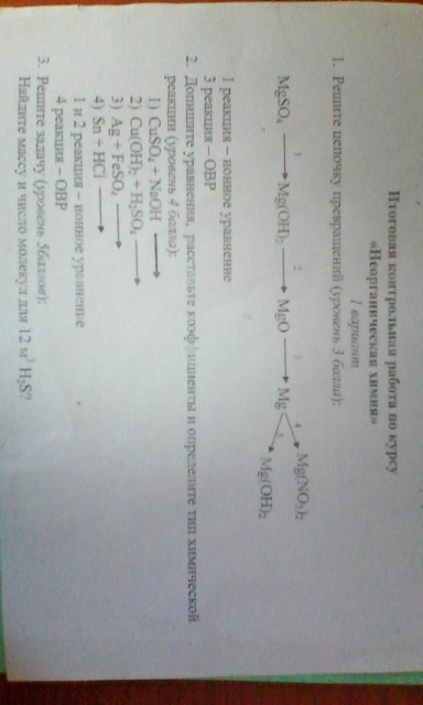 1. 1) MgSO₄ + Ca(OH)₂ =→CaSO₄ + Mg(OH)₂↓