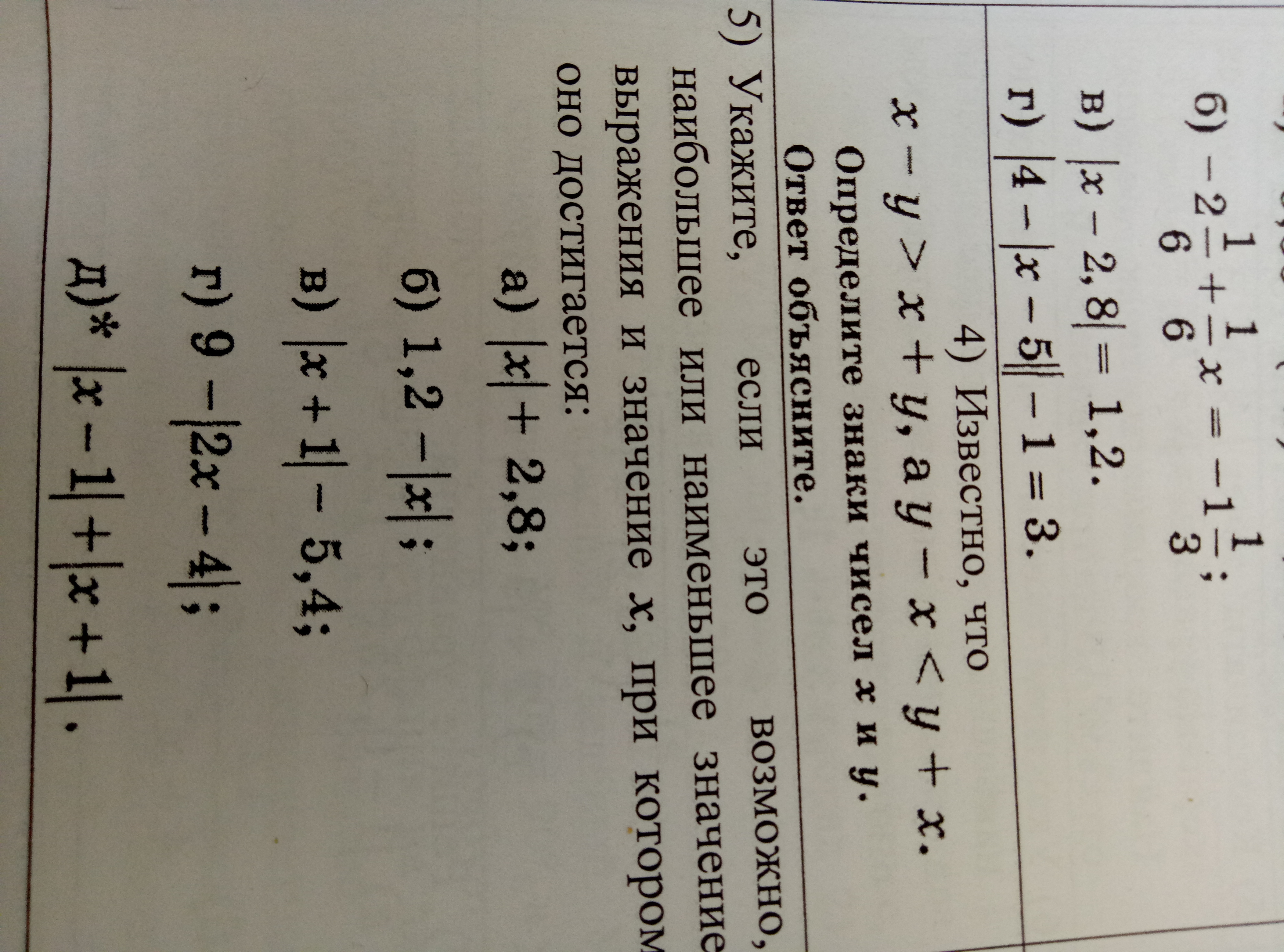 в) |х+1| - 5.4=[ - 4.4; +бесконечность], при х=0 достигается минимум=|0+1|-5.4= - 4.4, при х= + или - бесконечность достигается максимум=+бесконечность