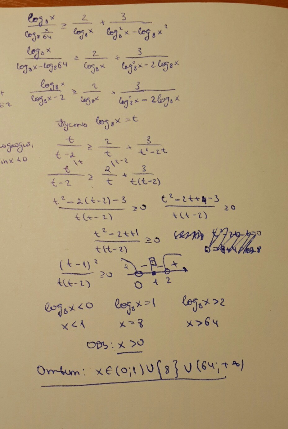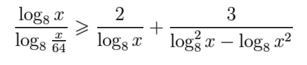 log8(X) / log8(X/64) >= 4 / log4(X) + 3 / ((log8)^2(X)-log8(X^2))