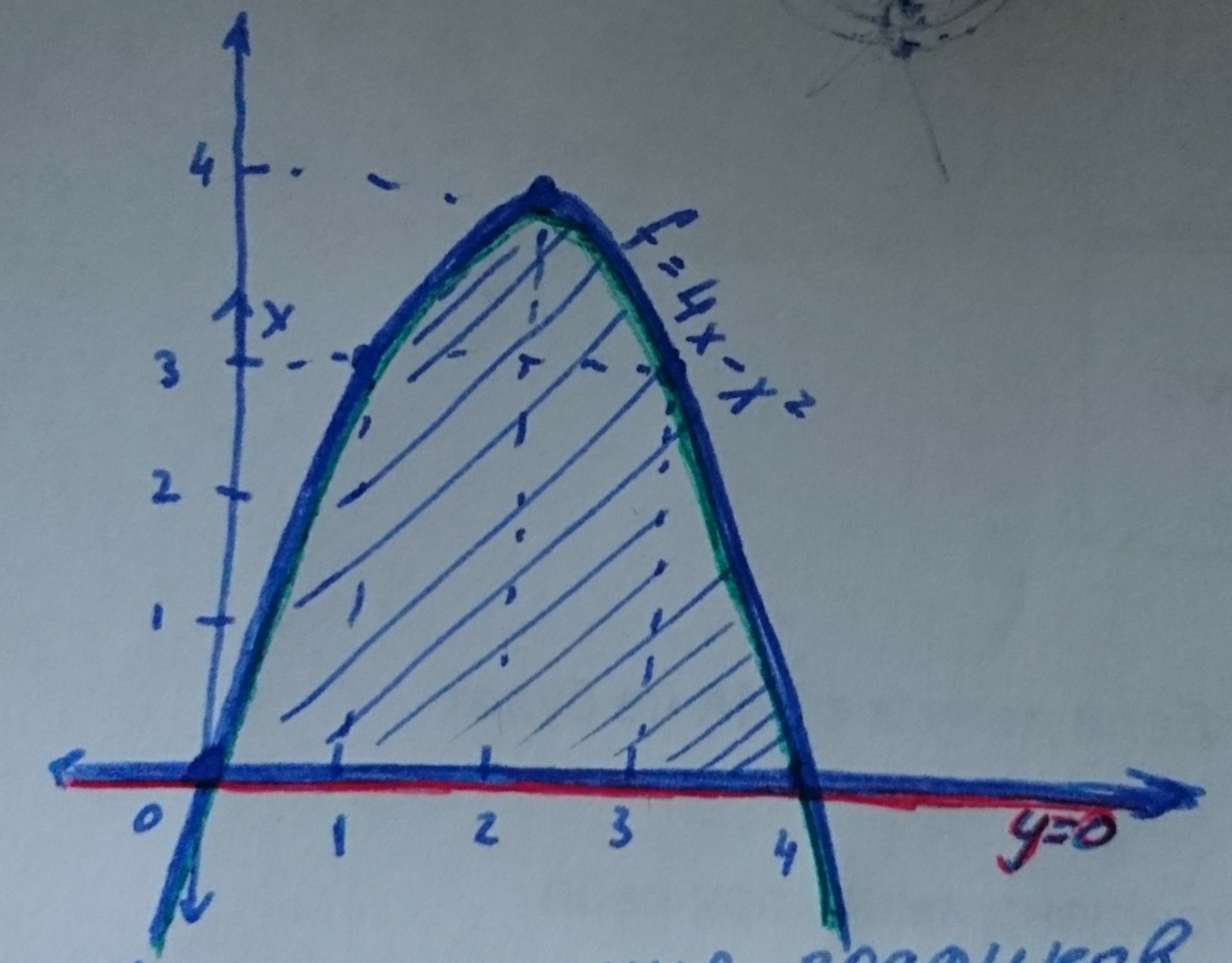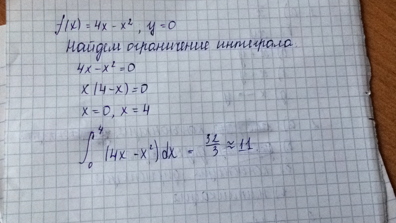 Точки пересечения y = 0 и f = 4x - x²: