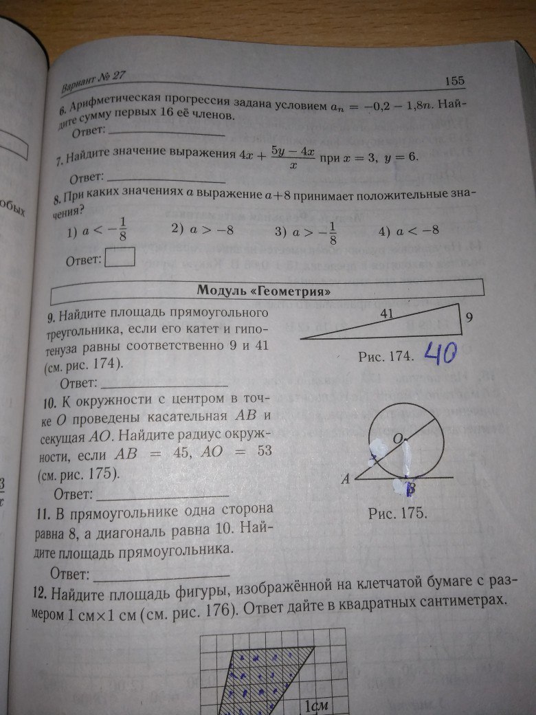11) диагональ образует 2 прямоуг. треугольника. По теореме Пифагора другая сторона равна корню из 10^2 - 8^2 = 6