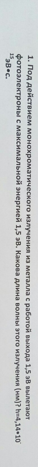 L=h*c/(A+Ek)=6,62*10^-34*3*10^8/(1,5+1,5)*1,6*10^-19=4,14*10^-7 м=414 нм