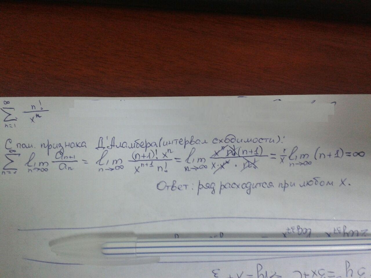 Ряд расходится при любом Х.