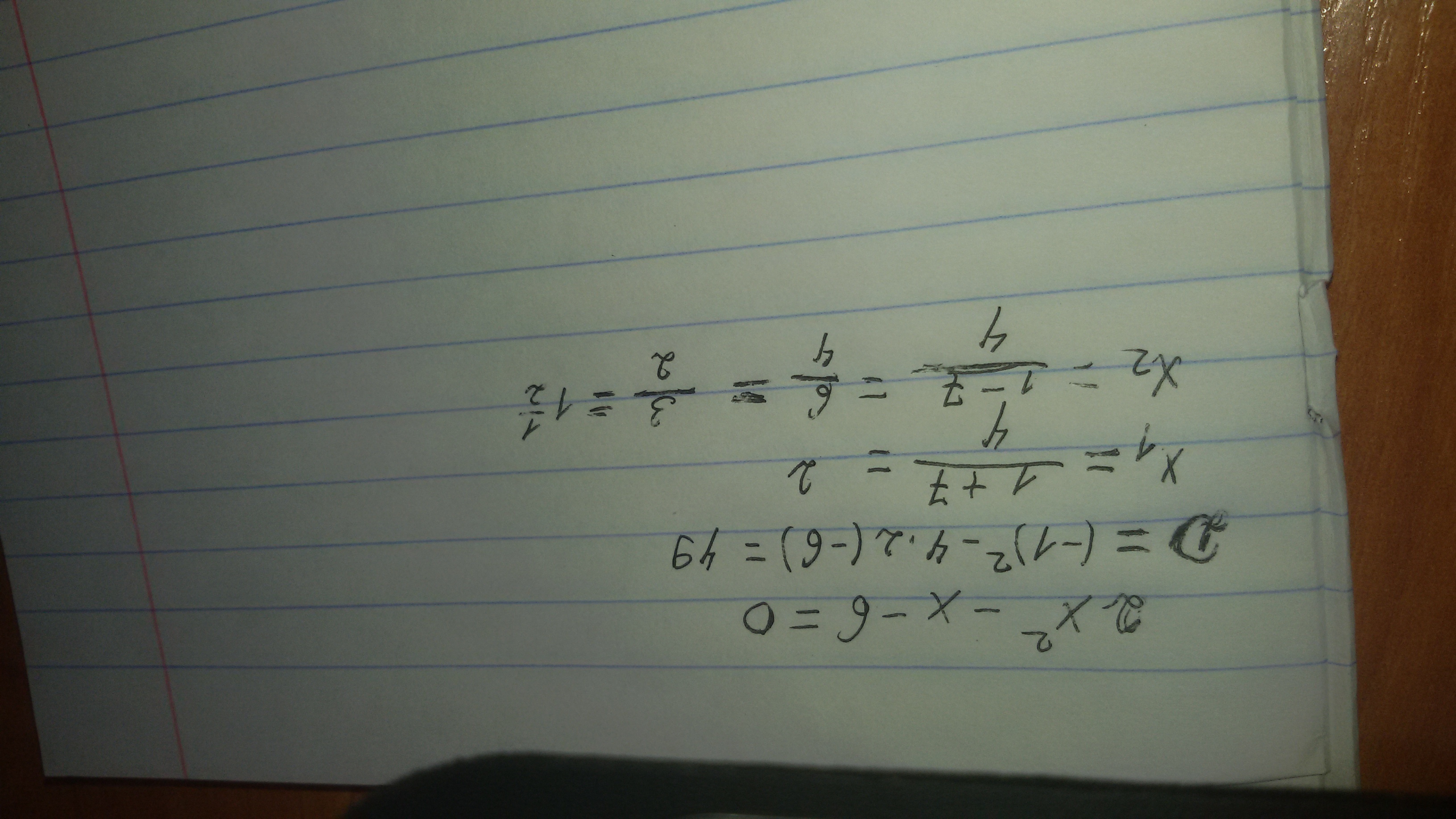 ▪х1= (-b+√D)/(2a) = (1+√49)/(2×2) = (1+7)/4 = 8/4 = 2