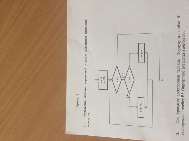 Здесь очень не понятная блок схема если здесь просто два условия if то выполнится первое условие у просто программа выведет что y=100 если же это цикл while то эта программа уравнивает числа то есть она прекращает свою работу когда числа равны и тогда y=25