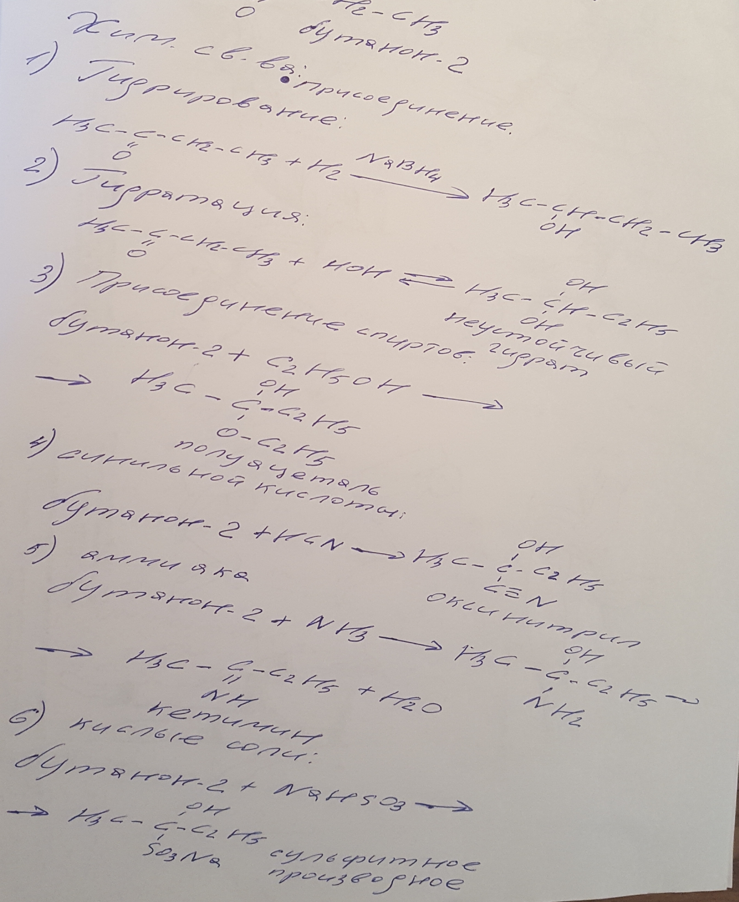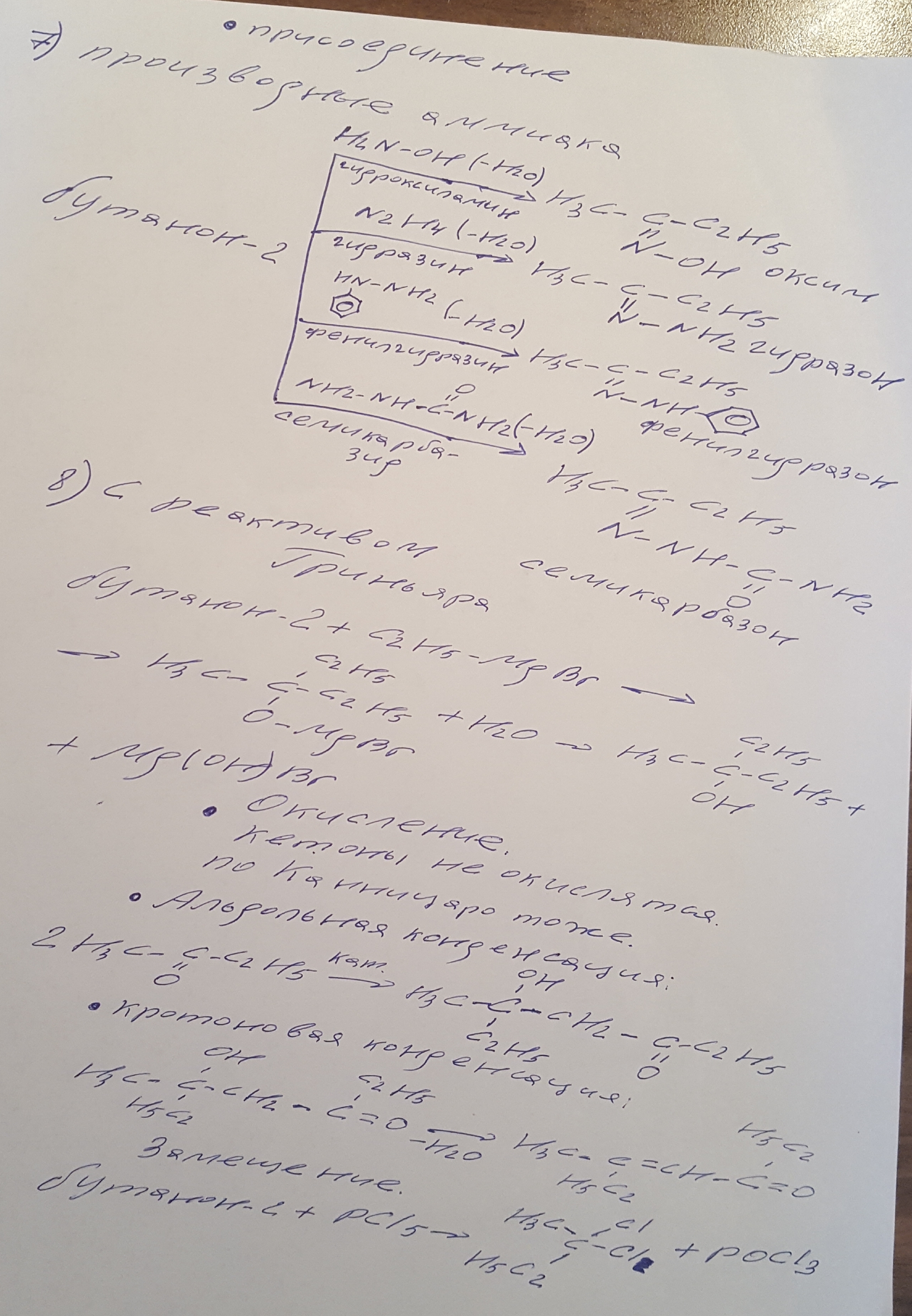 Химические свойства кетонов рассмотрены на примере бутанона-2. [ решение в двух приложенных файлах ]