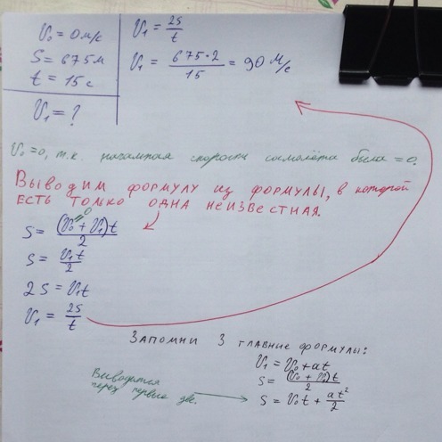 Практически все задачи механики с равнопеременными скоростями решаются с помощью трёх главных формул (написано чёрным внизу)