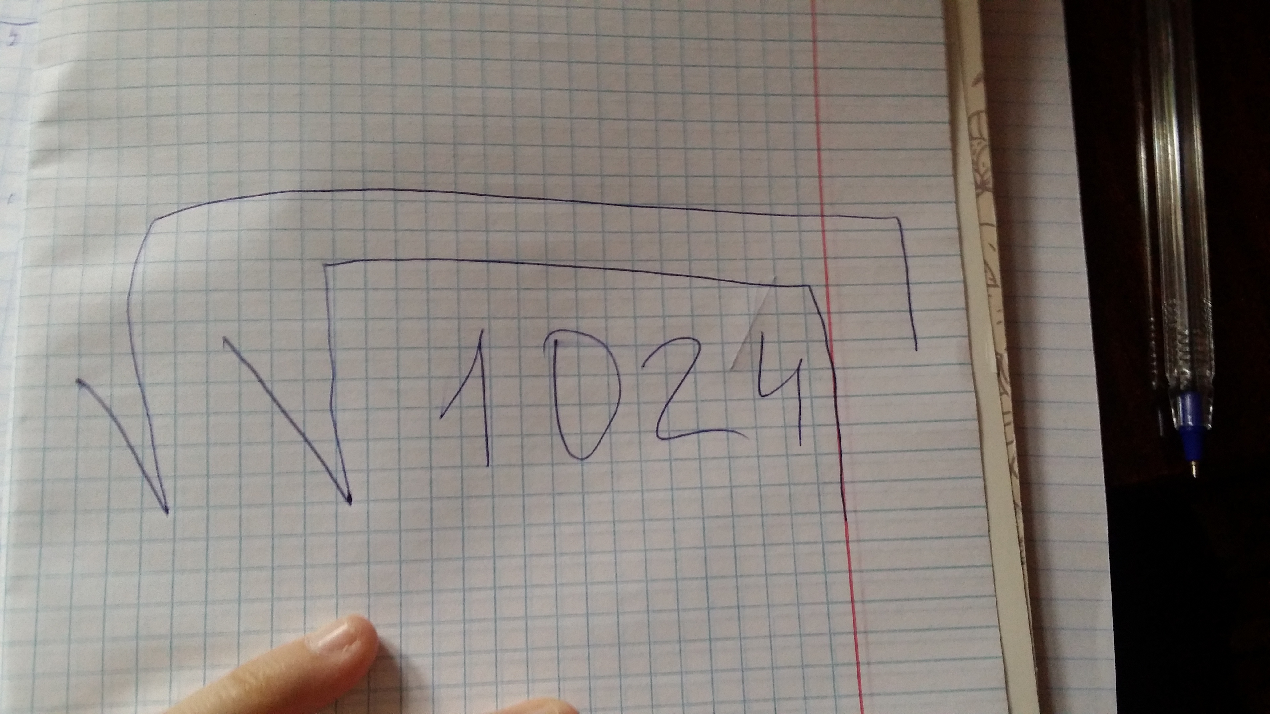 Корень из корня из 1024 можно записать как корень 4 степени из 1024.потом можно сократить до корень из 32.и ответ 4корня из 2