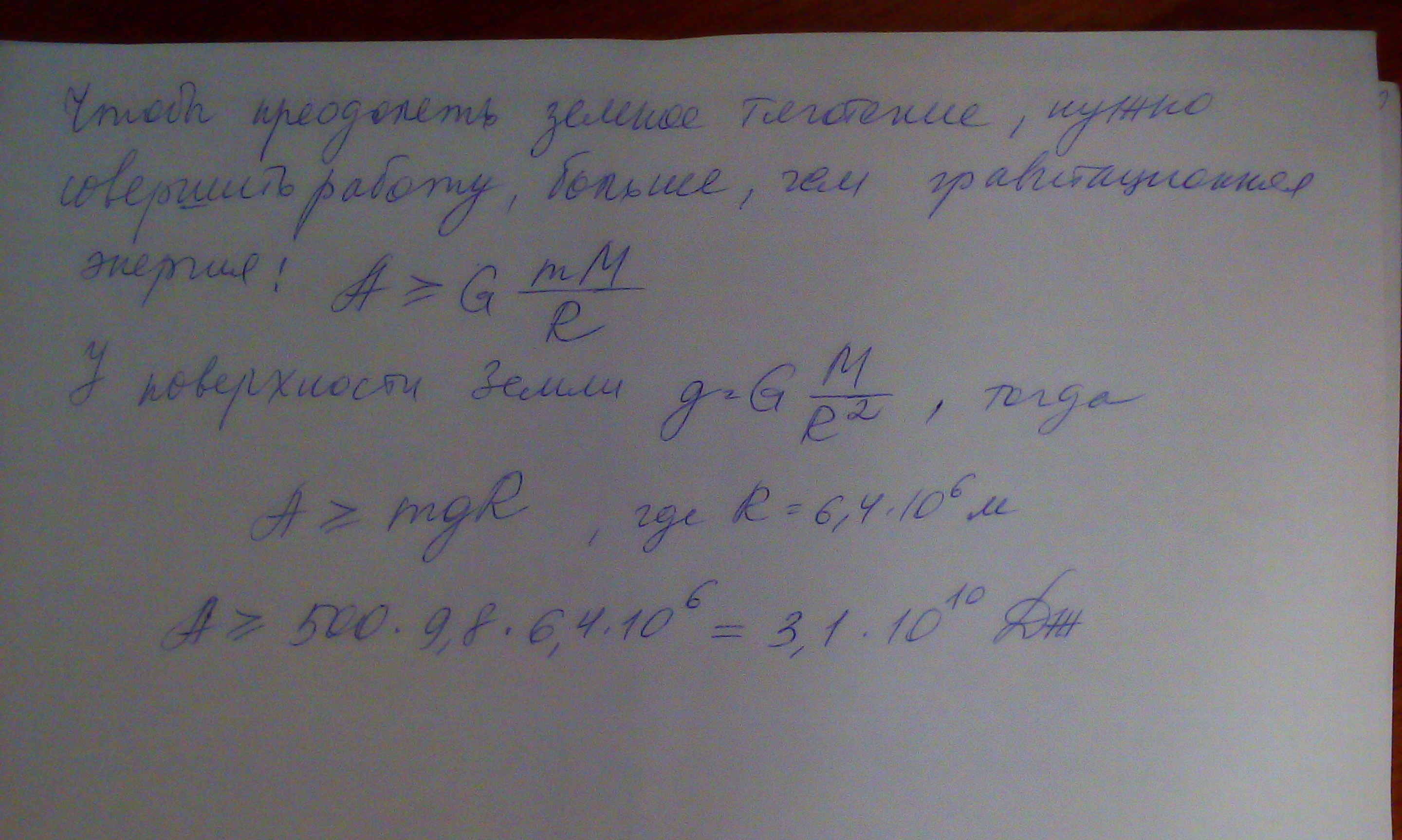 Какую минимальную работу необходимо совершить, чтобы, преодолев силу притяжения Земли, вывести тело массой m-500кг на орбиту искусственной планеты солнечной системы? считать известным ускорение свободного падения на Земле