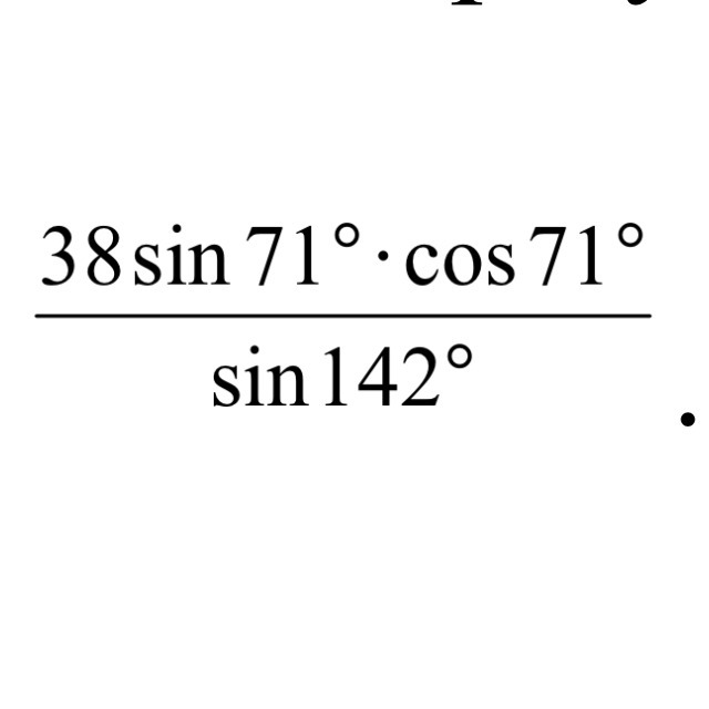 \frac{38\, sin71^\circ \, cos71^\circ }{sin142^\circ } = \frac{19\cdot (2sin71^\circ \, cos71^\circ )}{sin142^\circ } =\frac{19\cdot sin(2\cdot 71^\circ )}{sin142^\circ } = \frac{19\cdot sin142^\circ}{sin142^\circ } =19