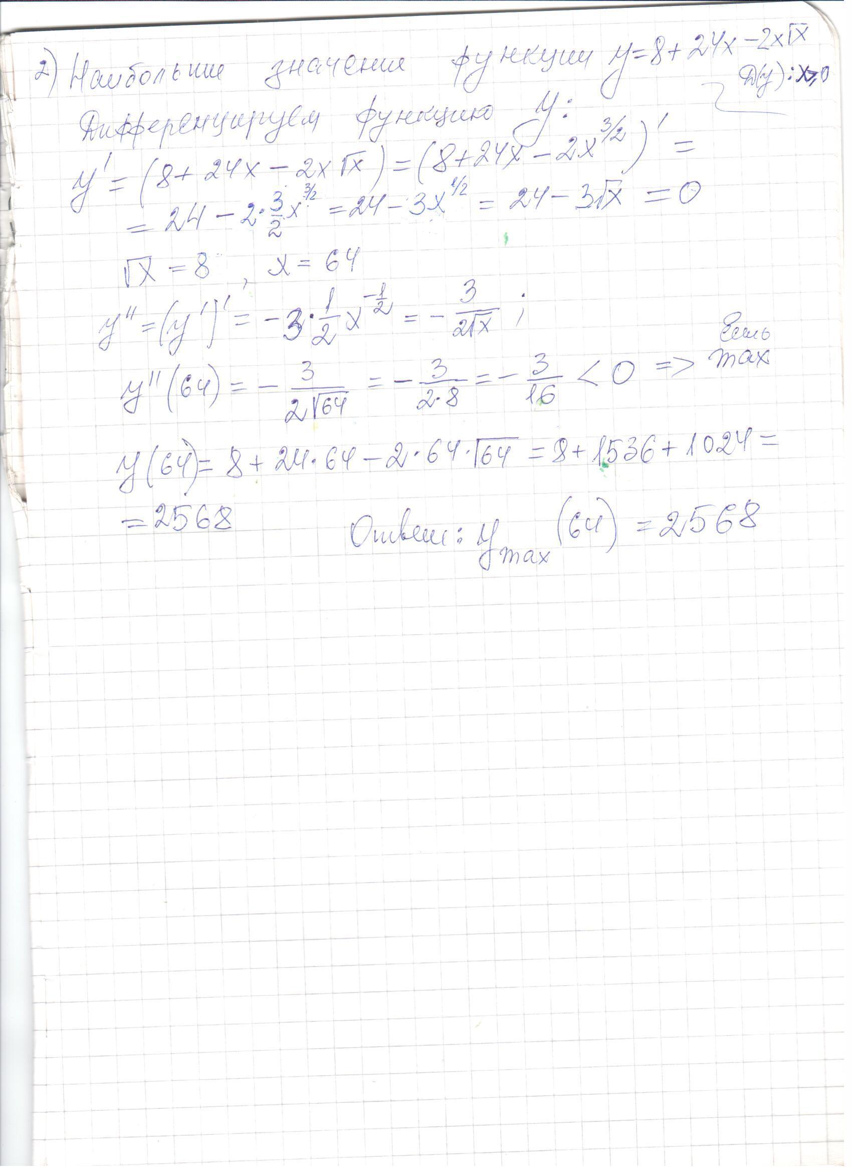 Найти наибольшее значение функции У=8+24Х-2Х√Х