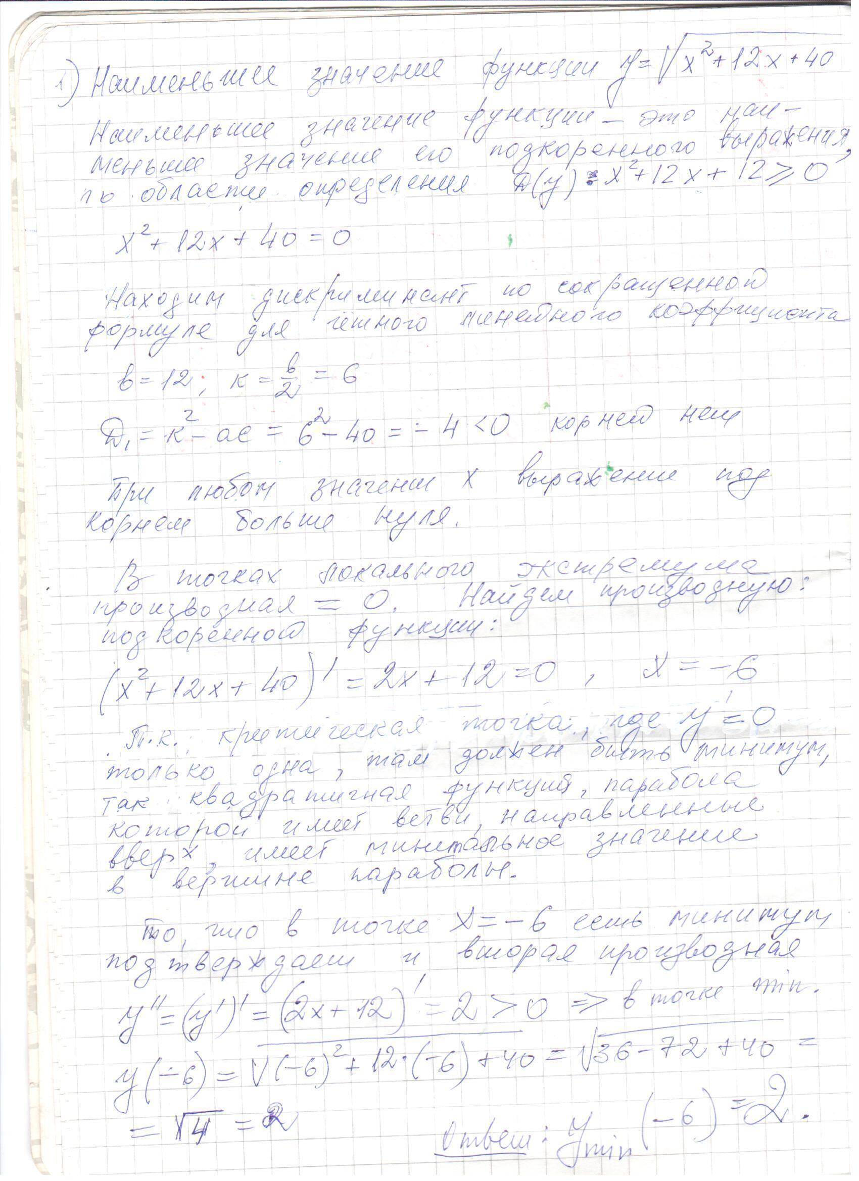 Найти наименьшее значение функции У=корень из Х^2+12Х+40(все выражение под корнем)