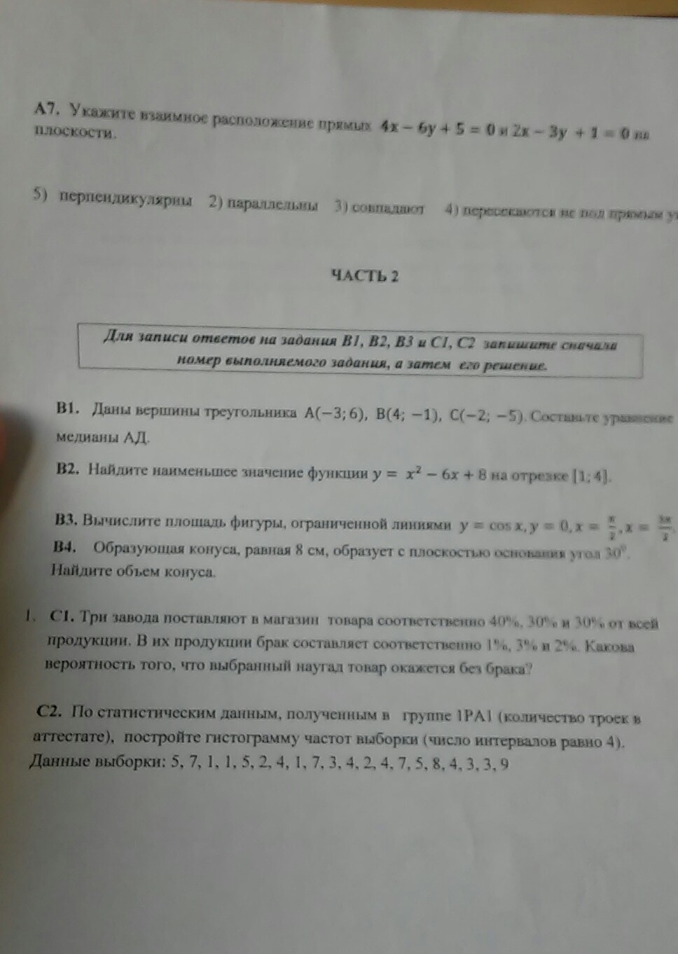 В1. Д - середина ВС, ее координаты х=(4+(-2))/2=1, у=(-1+(-5))/2=-3.