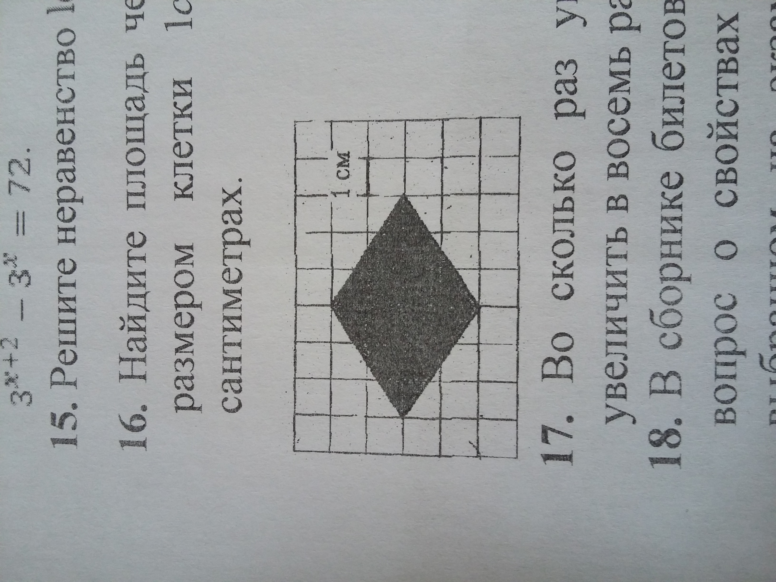Найдите площадь четырехугольника изображенного на коетчатой бумаге с размером клетки 1см×1см. Ответ дайте в квадратных сантиметрах